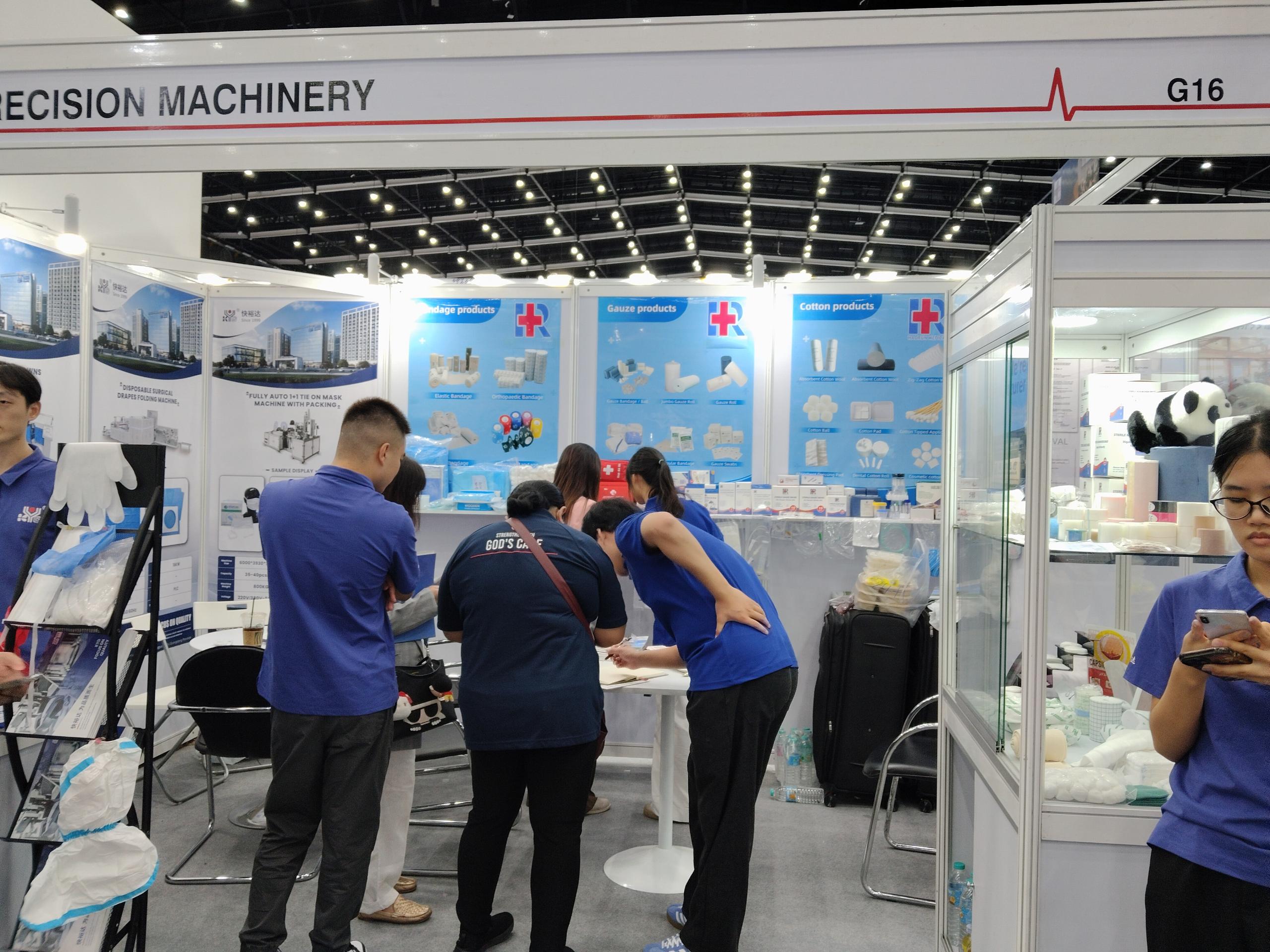 في موقع المعرض، جناح G16 الخاص بشركة HAORUN MEDICAL ملفت للنظر للغاية. وكما يتبين من الصور الموجودة في الموقع، توجد ملصقات عرض لمختلف المنتجات الطبية حولها، تغطي مختلف المستلزمات الطبية مثل الضمادات والمسحات القطنية. ينشغل الموظفون، الذين يرتدون ملابس زرقاء موحدة، بالتواصل مع الجمهور المحترف الذي يأتي للتشاور. يقوم البعض بتقديم خصائص ومزايا المنتجات للجمهور بعناية، بينما يقوم البعض الآخر بتسجيل احتياجات العملاء وتعليقاتهم بعناية. الجو في الموقع دافئ ومحترف.